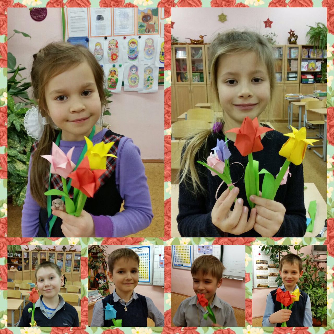Первый день весны, наш кружок отметил изготовлением ярких и красивых тюльпанов в технике "Оригами"