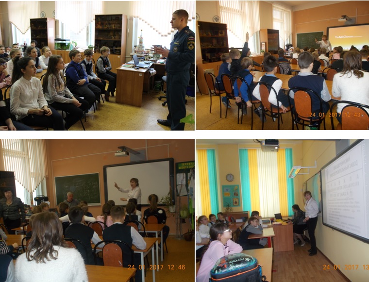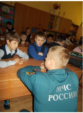 О деятельности пожарных и спасателей ребятам рассказал инспектор 4 регионального отдела надзорной деятельности и профилактической работы Дмитрий Горбунов, так же в беседе инспектор рассказал о том, что в 2017 году Государственный пожарный надзор отмечает 90-ю годовщину образования, рассказал, что основным направлением этой службы является профилактика предупреждения пожаров. Ребятам было рассказано, какие методы обнаружения пожаров находятся на вооружении пожарного надзора и методы направленные на профилактику предупреждения пожаров и загораний. Методист Пожарно-спасательного центра г. Москвы Людмила Минаеварассказала ребятам историю создания пожарной охраны в России, привела примеры пожаров которые особый урон. Особое внимание Людмила Минаева уделила вопросам случаев детской шалости, которые привели к возникновению пожаров, рассказала, на сколько игра с огнем опасна в руках детей. Так же было рассказано, как действовать в случае обнаружения дыма или загорания, как в здании школы, так и при нахождении дома, какие правила необходимо соблюдать, чтоб не допустить возникновения пожара, а так же напомнила телефон вызова пожарной охраны. По итогам мероприятия с детьми была проведена викторина на знание правил безопасности, где ребята проявили активное участие. В завершении весь класс был приглашен на посещение экскурсии Музея пожарной охраны, чему ребята очень обрадовались.