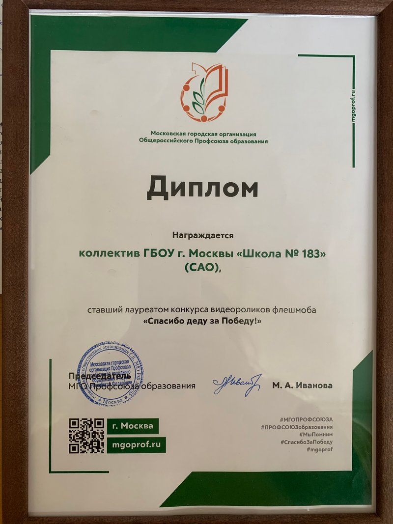 Коллектив молодых педагогов нашего комплекса стал лауреатом конкурса видеороликов флешмоба «Спасибо деду за Победу!». Поздравляем и желаем успехов! Ваш профсоюз!